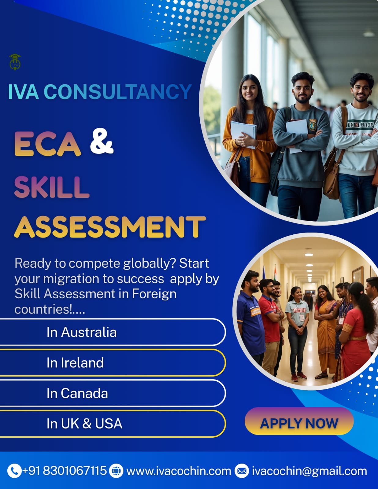 Assisting students in choosing the right course, university, and destination based on their academic profile, interests, and budget.We leads Visa Guidance, Accommodation and Part time Job, Financial Aid,Test Prepration and Application Assistance